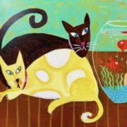 When I am standing in front of a work of art I am inspired and motivated by the creative dance I see played out through the chosen medium of the artist. I absolutely love to interact with art. A charming subject or even a simple brushstroke can inspire me. And as my thoughts swirl around in my head it challenges me to reach deeper for my own expression and to find my own interpretation. I want to delight my audience the same as I am delighted by works of art. When I see people looking at my paintings and smiling and even giggling it makes me feel joy! I create playful and positive compositions, happy colors, and feel-good scenes that I hope will inspire and shape positive emotions.
